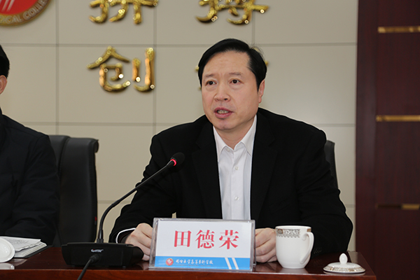 田德荣同志作表态发言。他表示服从组织决定,感谢组织的信任,非常高兴能来到医专和大家一起工作,在新的岗位上,将严格要求自己,虚心学习,踏踏实实的做好本职工作。他说,邢台医专目前有一个团结战斗的领导班子,有一支素质优良的好队伍,有良好的工作基础、建设基础,因此有底气、有信心把医专的工作干好。他表示,将认真履职、科学履职、恪尽职守、勤政廉政,把党的方针政策和各项要求落到实处,推动学校的工作跨越发展。