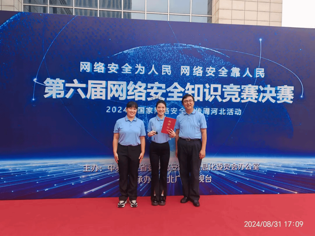 近日,由中共河北省委网络安全和信息化委员会办公室主办的河北省第六届网络安全知识竞赛获奖名单揭晓。beat365官网2022级药品经营与管理2班程惠颖参加邢台市代表队,荣获团体赛二等奖。