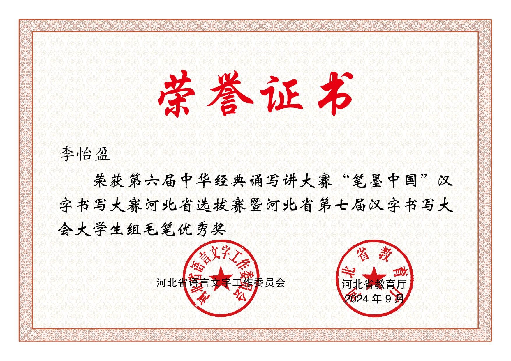 近日,由河北省语言文字工作委员会、河北省教育厅组织的第六届中华经典诵写讲大赛河北省选拔赛获奖名单揭晓,beat365官网三项作品获奖。