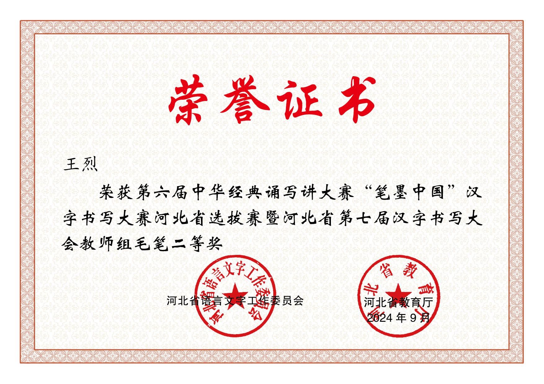 王烈老师的软笔书法作品《录东坡题跋二则》荣获教师组二等奖,并入围国赛。