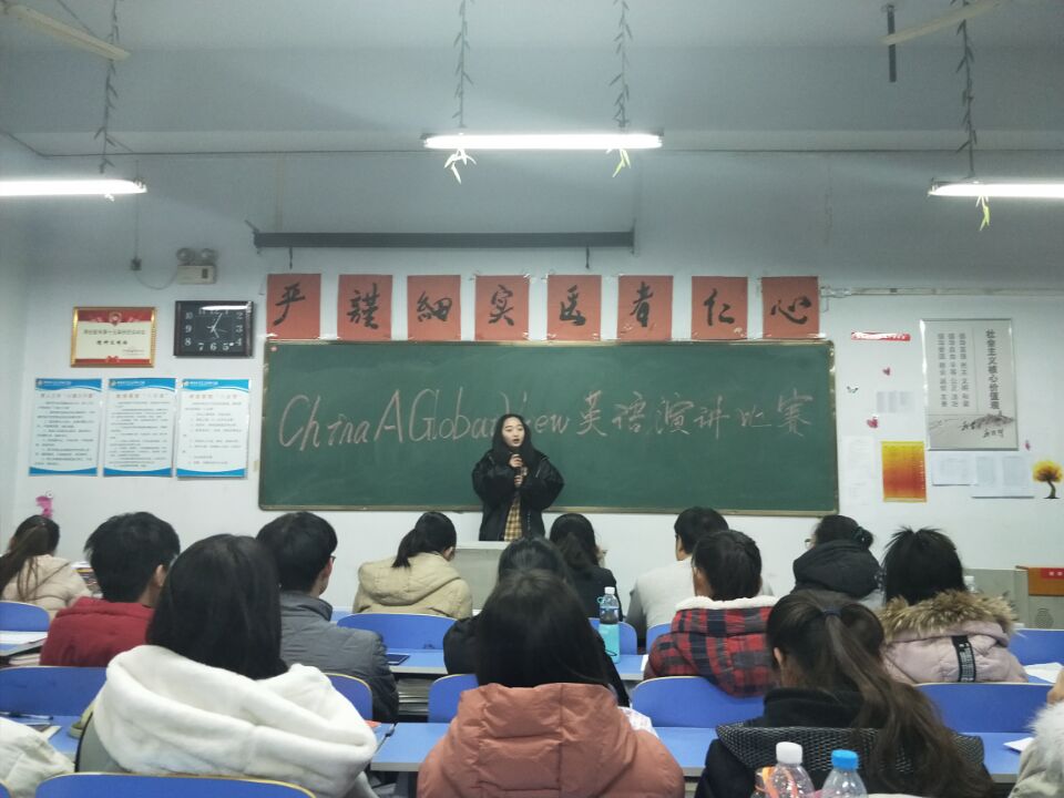12月11日,学校团委英语协会在8号教学楼301教室举办“China A Global View”英语演讲比赛。校团委副书记卢青老师、组织宣传处李海涛老师、英语教研室殷淑文老师、图书馆王映瑜老师担任比赛评委。