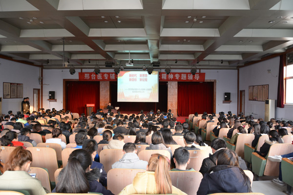 11月30日下午,beat365官网举办辅导员学习党的十九大专题辅导讲座。学校关工委副秘书长张青涛应邀作了题为《新时代,新思想、新目标、新征程——学习领会党的十九大精神,认真做好新时期的学生工作》的讲座,学校全体辅导员和学生代表共300人到场学习。