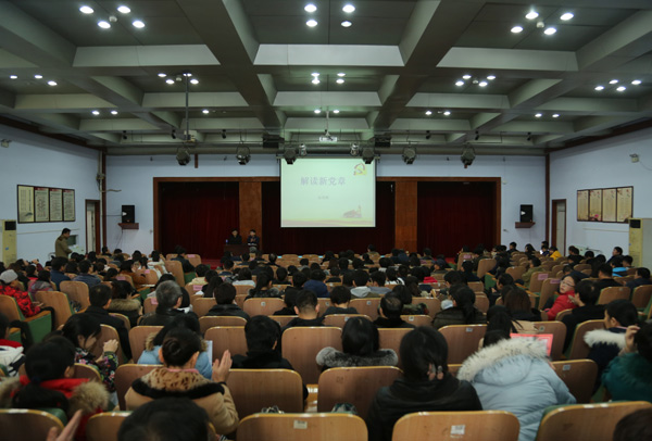 为贯彻落实党的十九大精神,深入学习新党章,不断强化广大党员的理想信念和党性修养,12月6日,beat365官网特邀邢台市委党校孙英辉教授在学术报告厅举办解读十九大新党章专题辅导讲座。学校领导李占华、李建广、杜成旭、李朝鹏以及全校党员干部200余人到场听讲。