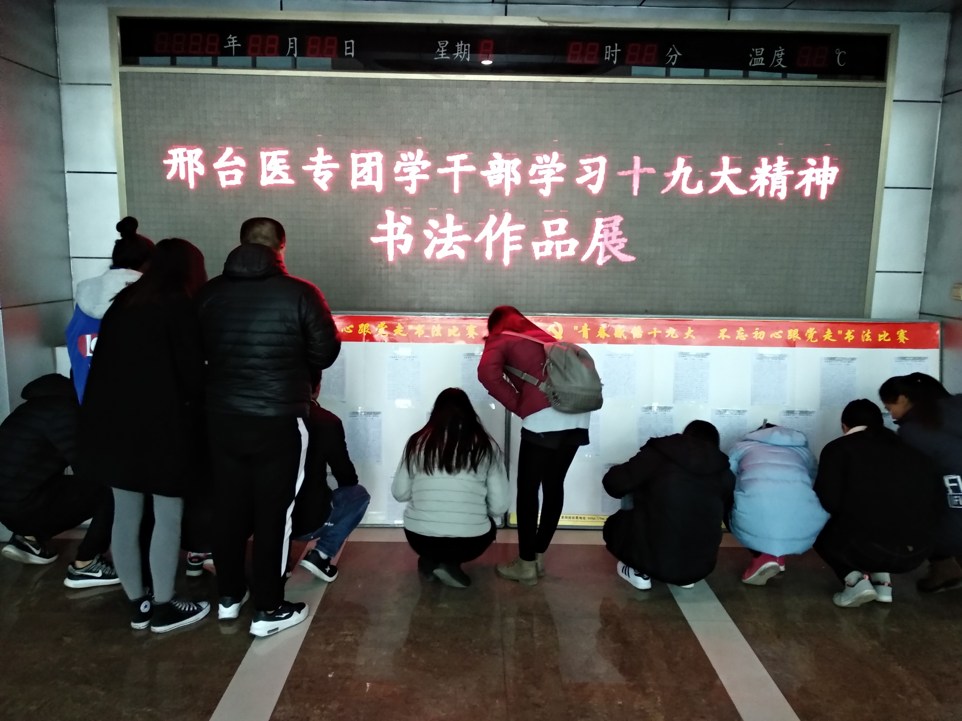 为深入学习宣传贯彻党的十九大精神,引导团学干部深入理解党的十九大精神的深刻内涵,12月1日—11日,学校团委举办了“青春感悟十九大,不忘初心跟党走”团学干部学习十九大硬笔书法比赛。