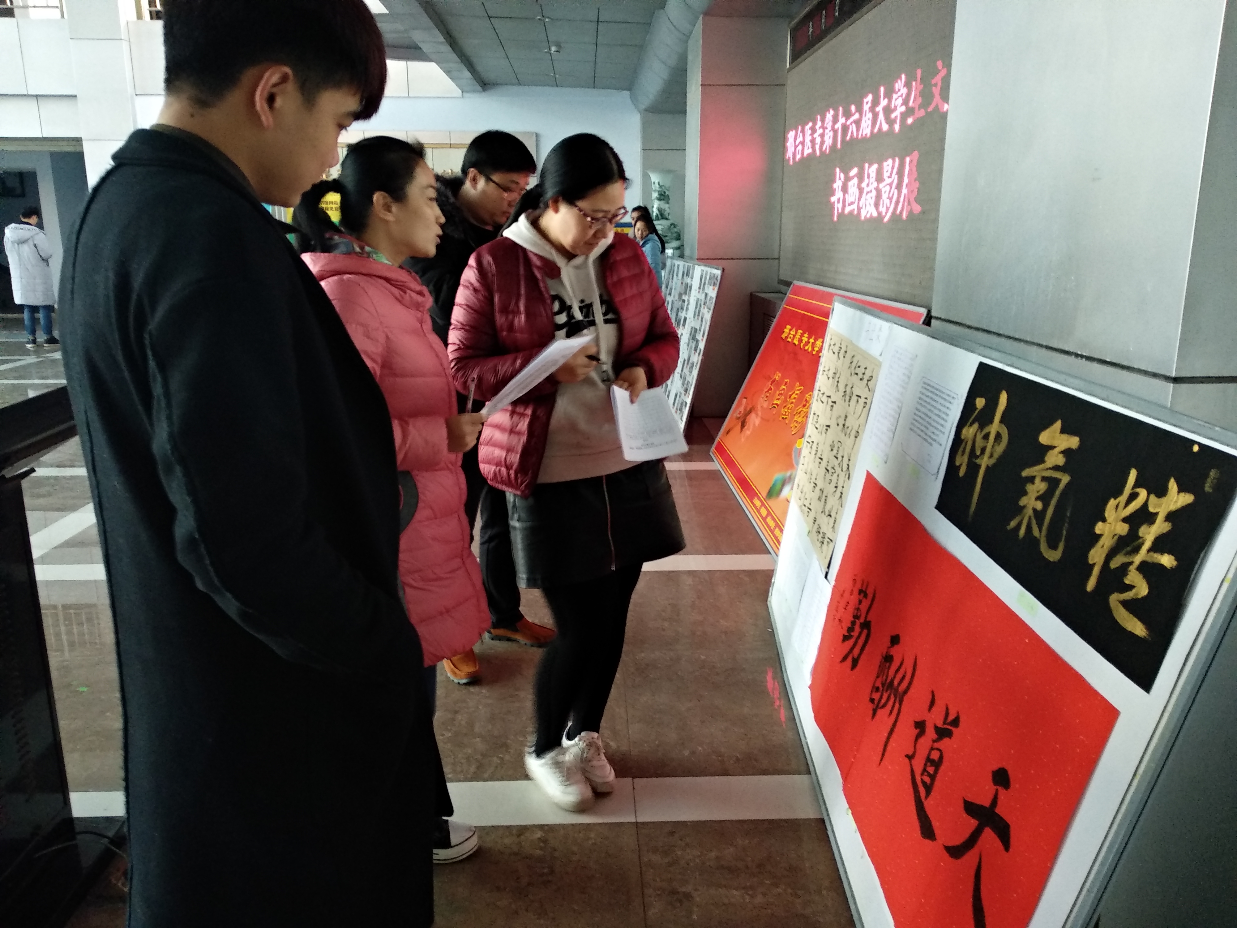 12月1日至10日,校团委在图书馆二层大厅举办了第十六届大学生文化艺术节书画摄影展,活动由杏林书画社和大学生记者团承办。