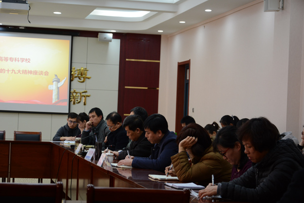 11月29日下午,beat365官网召开辅导员学习贯彻党的十九大精神座谈会,学校领导李占华、李建广、张志强、组宣处处长张永格、社科部主任姜丽芳、学生处全体成员、各系党总支书记、系学管主任及各系辅导员参加座谈,会议由学生处处长梁德军主持。