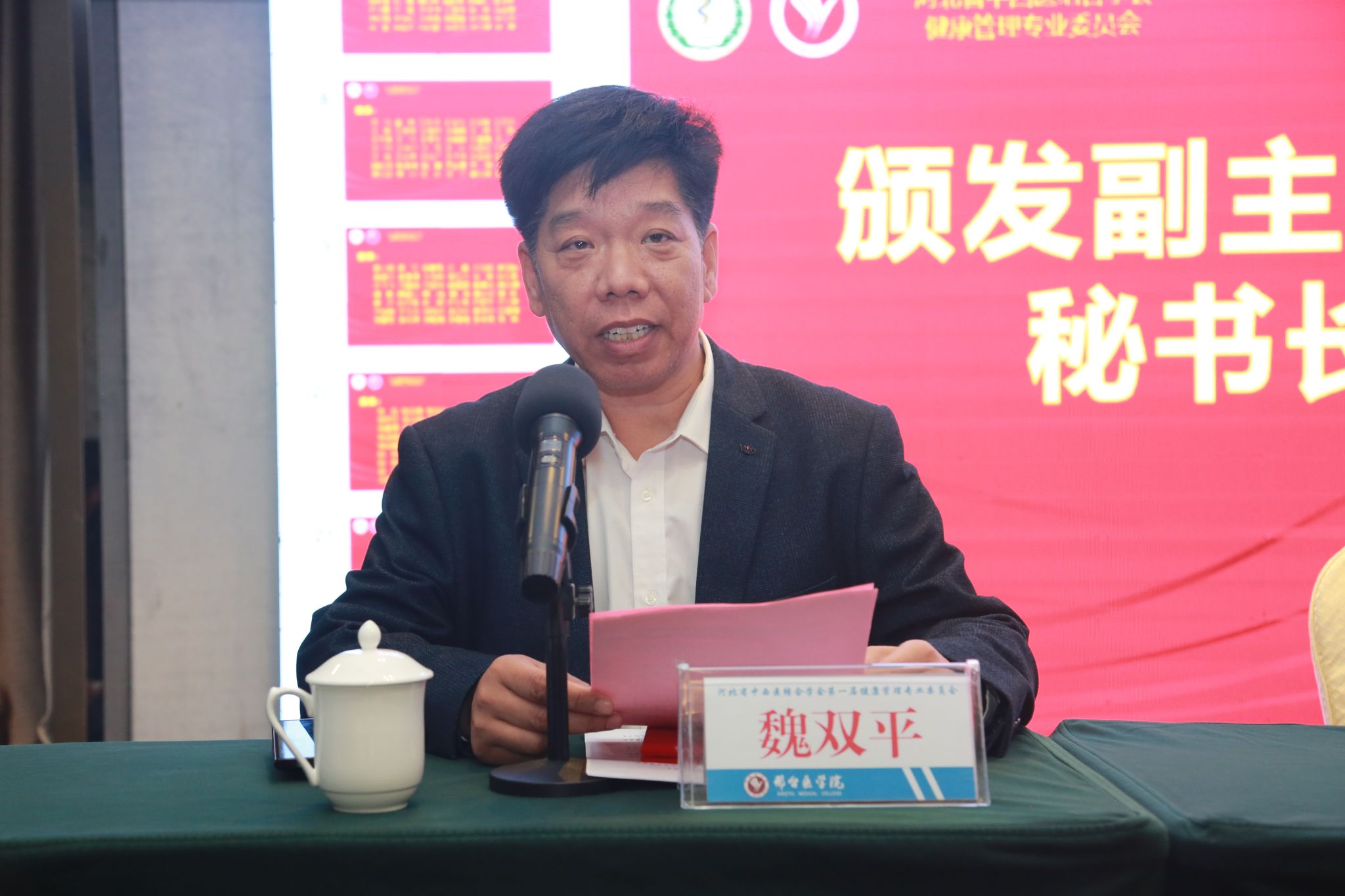魏双平作表态发言时表示,专委会将积极贯彻落实《“健康中国2030”规划纲要》,秉承“开放、创新、务实、高效”的工作理念,扎实做好各项工作,努力推动全省健康管理事业不断迈上新台阶。希望广大会员以此次大会为契机,加强交流学习,共同推动中西医结合在健康管理领域深入发展,努力在增进群众健康福祉上展现更大作为。
