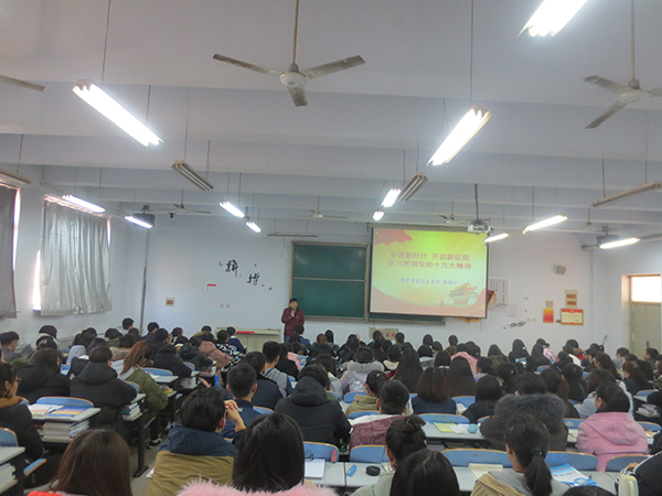 为深入宣传贯彻党的十九大精神,用新思想、新方略、新目标、新要求指导推动工作,11月30日,药学系党总支在2017级普检1班教室举办了“奋进新时代、开启新征程”学习贯彻党的十九大精神专题讲座,系党总支书记杨福江主讲,150余名师生参加讲座。