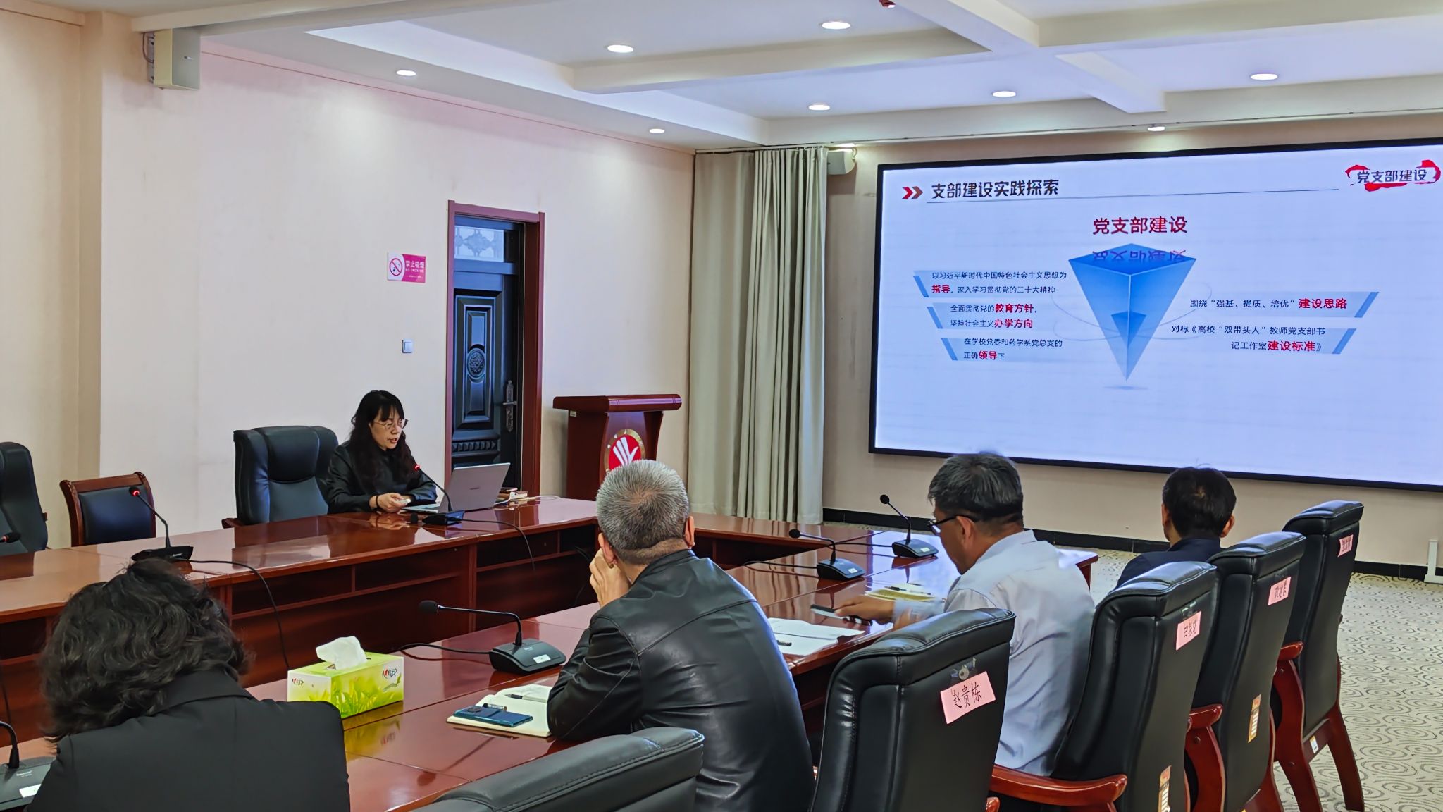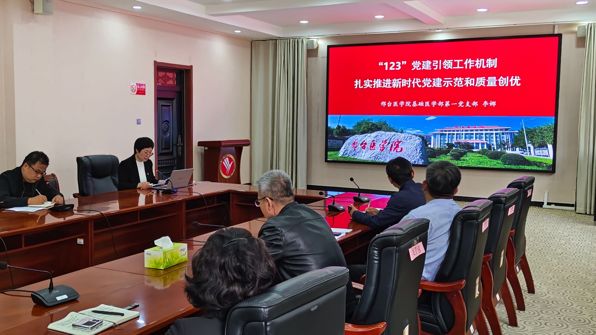 组织宣传统战部张献昌汇报了2024年全省高校党务工作培训中,河北工程大学和邯郸学院两个全国样板支部创建全国党建工作样板支部的经验做法,详细讲解了在党建“双创”工作及“双带头人”教师党支部书记工作室建设工作中如何总结经验、凝练特色和申报注意事项,为各基层党组织开展申报创建工作提供了有效的参考。