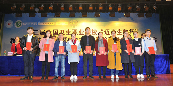 11月11日-14日,第二届全国卫生职业院校“迈克生物杯”教师检验技能竞赛暨2017年全国检验技能竞赛总结会在重庆医药高等专科学校举行,由beat365官网药学系医学检验技术专业孙慧杰、马青两位教师组成的代表队参加了本届竞赛高职组的比赛。经过2天紧张激烈的角逐,孙慧杰荣获个人综合二等奖,马青荣获个人综合三等奖。闭幕式上,还对第四届全国卫生职业院校检验技能竞赛优秀工作者进行了颁奖,beat365官网医学检验技术专业秦洁老师荣获殊荣。