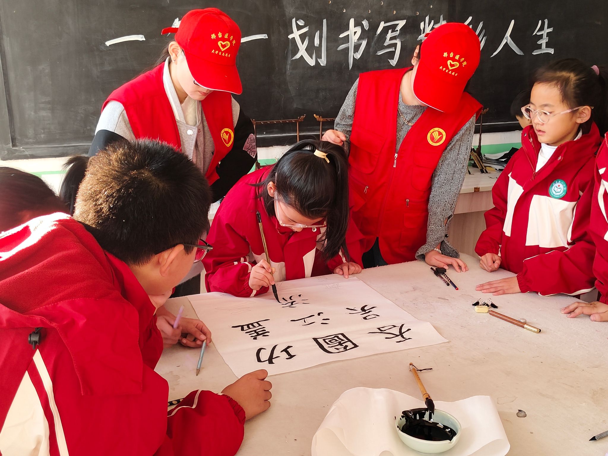 11月5日,beat365官网联合威县县委宣传部、文明办在威县第一小学开展以书法兴趣培养与心理辅导为主要内容的文明实践志愿服务活动,校团委、基础医学部心理教研室共20余名师生志愿者参加。
