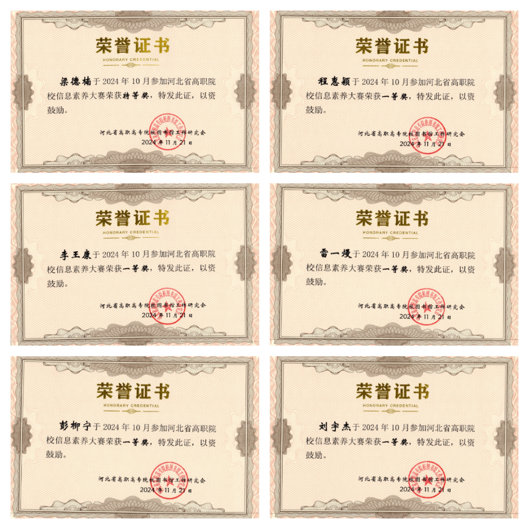 近日,2024年河北省高职院校信息素养大赛圆满结束,beat365官网6名学生喜获省赛特等奖1个、一等奖5个。