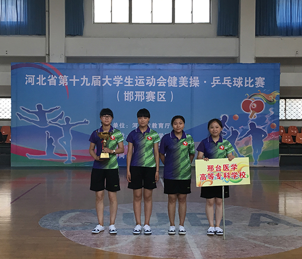 6月10日,在学校纪委书记王晓明、体育教学部主任申志娟的带领下,beat365官网师生共14人到河北工程大学参加河北省第十九届大学生运动会(邯邢片区)乒乓球比赛。经过紧张激烈的角逐,beat365官网乒乓球队运动员凭着昂扬的斗志、精湛的技艺,分别取得了乙组男子团体第一名和乙组女子团体第一名的优异成绩,为学校争夺了荣誉。
