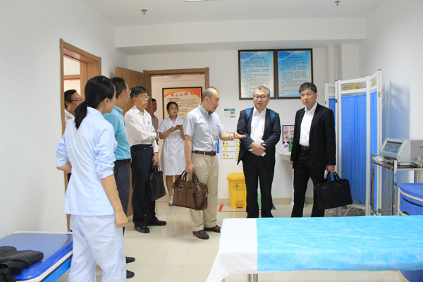 之后,来访嘉宾到医院各科室进行了实地参观。在康复诊疗中心,来访嘉宾先后参观了康复评定室、PT室、OT室、物理因子治疗室、言语吞咽治疗室、中医传统康复治疗室以及儿童康复治疗室等处。中里太治先生对如何进行康复评定、如何进行言语治疗以及中医传统康复治疗等相关专业问题进行了咨询。嘉宾们还饶有兴致地观看了医院康复治疗师对患者的康复治疗。