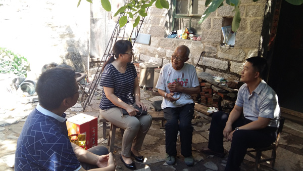 袁学诗老人今年83岁了,身体还硬朗,生活尚能自理。在袁学诗老人家里,蒲爽书记与老人进行了亲切交谈,详细询问了老人的生活起居等情况。得知老人因为左耳不明原因渗血,刚刚输液回来,大家叮嘱老人要注意身体,并劝告老人及时到医院检查,查明原因再对症治疗,老人点头答应。