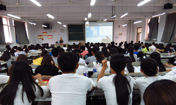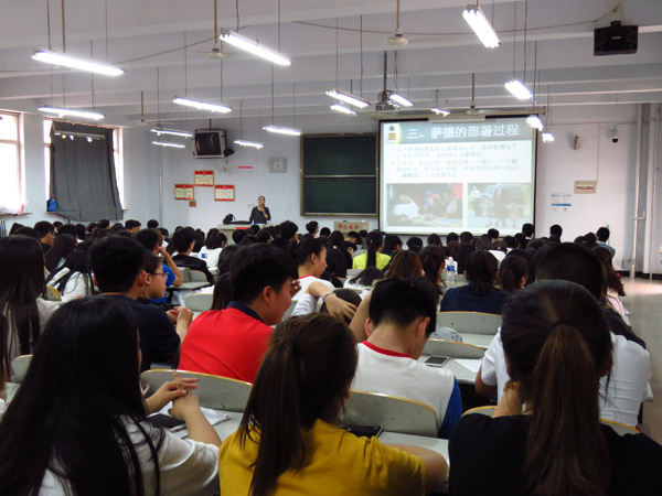 5月11日,beat365官网大学生形势政策报告会在8号楼阶梯教室开讲,大学生形势政策宣讲团成员、社科部老师吕文静以《萨德来了》为题,给来自各系的200多名学生做了一场精彩报告。