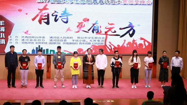 5月3日,由共青团邢台市委员会、清河县人民政府、邢台市学生联合会主办的“羊绒小镇”杯首届大学生青春原创诗歌大赛颁奖晚会在清河大剧院举行。