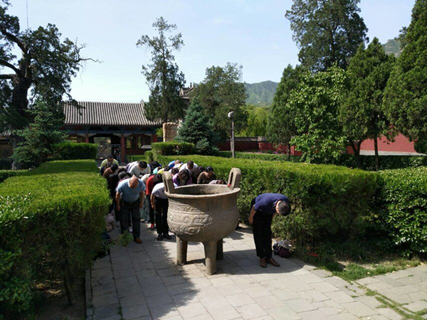 内丘县是扁鹊最主要的行医圣地,扁鹊出神入化的医术、先进的医学理念、对望闻问切尤其脉诊的发扬传承,至今对中医学的发展仍有深远的影响。在扁鹊庙祭拜现场,由内丘县中医院(扁鹊医院)副院长梁志春主持祭拜仪式,大家怀着敬仰的心情,分列恭立,齐声颂祷祭拜文“天地玄黄,华夏泱泱,赫赫医祖,诸科精良……抒发情怀,再铸岐黄”,随后向扁鹊像三鞠躬,深切缅怀这位春秋战国时期誉重当时、影响千秋的华夏中医鼻祖。老师们深刻体会到中医药的传承从未间断、中华民族文化命脉的绵延不息、中医药的历久弥新与生机勃勃。