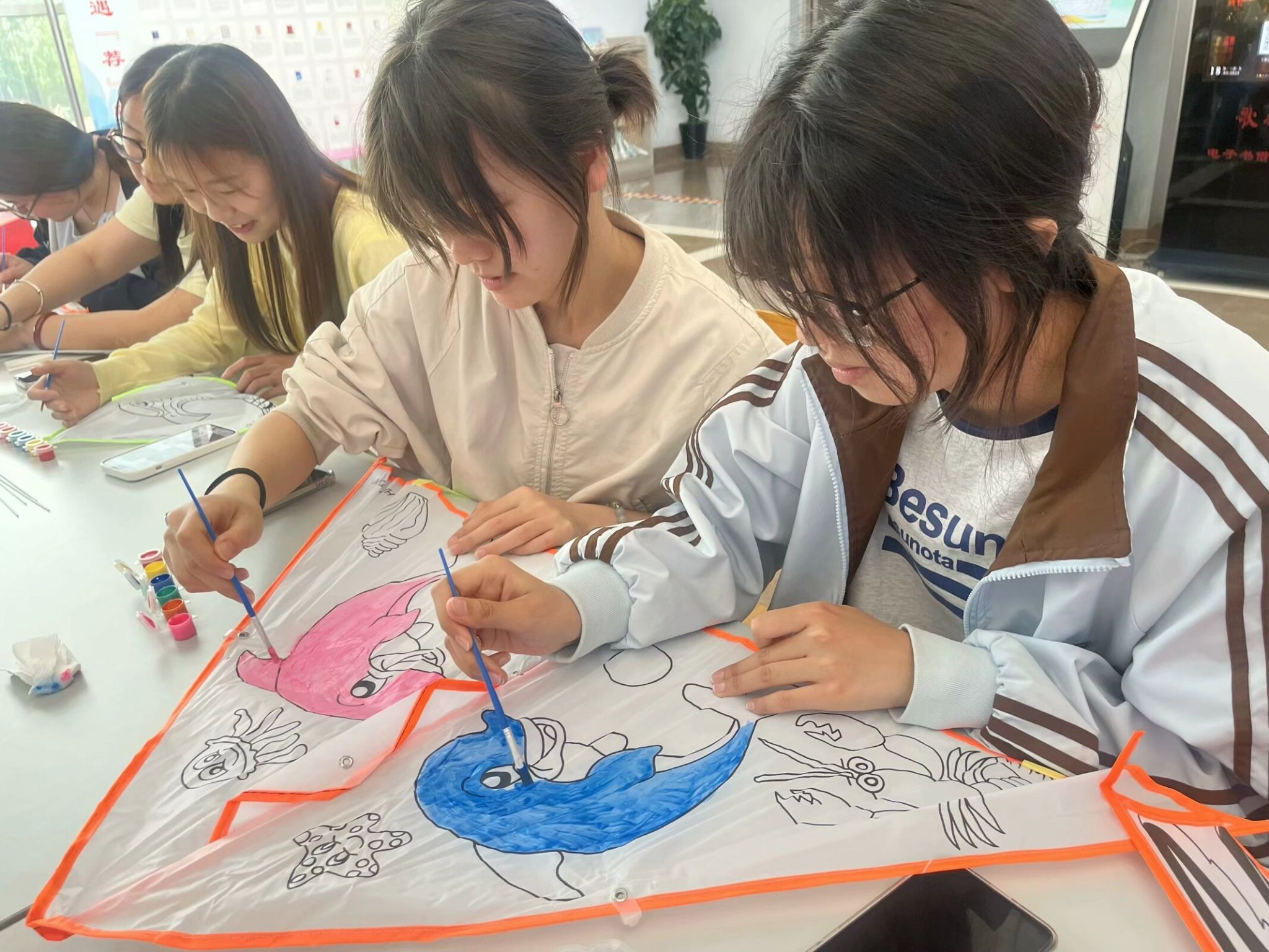 活动共吸引了50多名同学的参与。在图书馆二楼大厅的活动现场,图书馆工作人员向同学们介绍了风筝的历史文化,从中国古代风筝的起源,到风筝在不同历史时期的发展和用途,让同学们加深了对这一传统工艺品的了解。随后,充满创意的 DIY 风筝环节将活动推向了高潮,同学们充分发挥自己的想象力和创造力,用彩笔和颜料为风筝赋予了独特的色彩和个性,一只只风筝变得五彩斑斓、栩栩如生,仿佛即将展翅高飞的精灵。看着自己亲手绘制的风筝,大家脸上洋溢着自豪和喜悦的笑容。