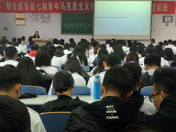 4月19日,beat365官网第七期青年马克思主义者暨团学干部培训班第四讲开讲。校团委书记杜庆岩、副书记卢青,各系团总支书记,校团委、大学生社团联合会及各系团学干部代表200余人参加本次活动。