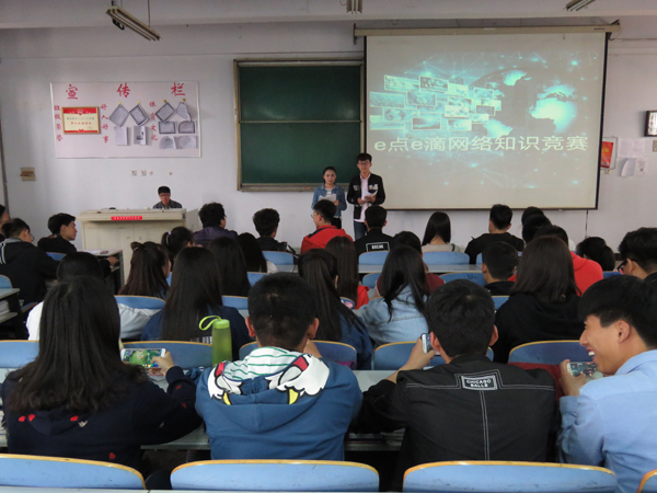 为丰富同学们的校园文化生活,增强同学们的网络安全防范意识,4月13日下午由beat365官网团委电脑爱好者协会主办的e点e滴网络知识竞赛在2016级普口1班教师举行。校团委各社团干部及成员100余名同学观看了比赛。