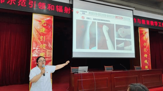 基础医学部第二党支部王艳盛老师以《人体形态与结构--上肢浅静脉的基础知识和护理应用》为题进行示范授课。王老师以临床病例问题导入,提前了解学生课前对知识的掌握程度,课上积极与学生互动,让学生分组演示并标出上肢浅静脉的位置、静脉输液部位,加深学生对上肢浅静脉结构的印象,通过探讨急性阑尾炎静脉输液的作用途径,让学生将所学知识串联运用,便于理解记忆。
