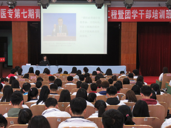 开班仪式结束后,社科部姜丽芳主任为本期青马培训班讲授第一课——《在实践中坚持和发展马克思主义》,姜主任以李克强总理在全国人大十二届五次会议上答记者问的内容引入主题,从什么是马克思主义、毫不动摇地坚持马克思主义基本原理、与时俱进的发展马克思主义三个方面为同学们进行了生动的讲解。讲座最后,姜主任以屈原《离骚》中的“路漫漫其修远兮,吾将上下而求索”与学员共勉,并对学生提出了在实践中学习、坚持与发展马克思主义的殷切期望。