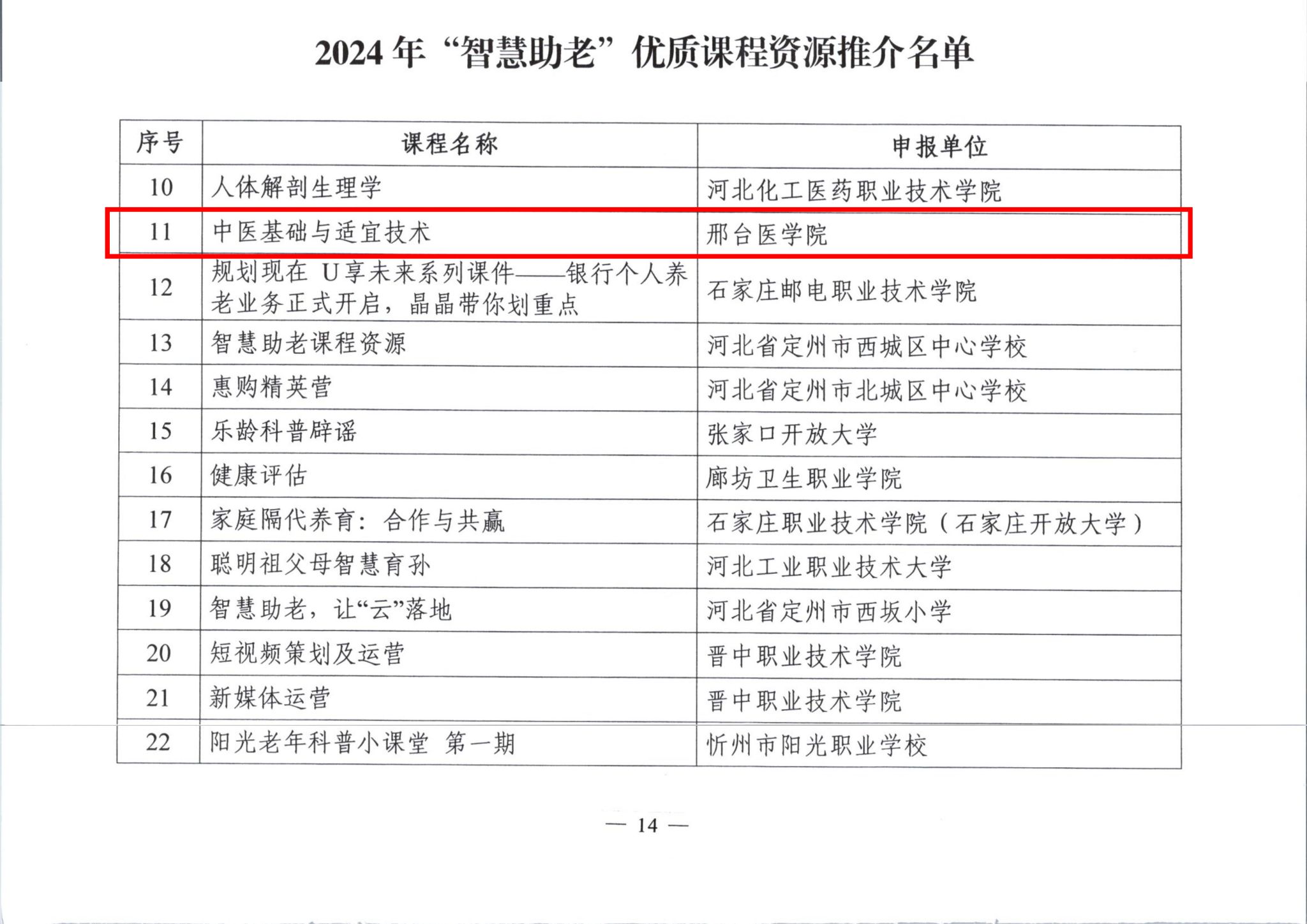 近日,由中医系建设的《中医基础与适宜技术》课程成功入选教育部2024年“智慧助老”优质课程资源推介名单。该课程将通过全国老年教育公共服务平台进行展示,为老年人提供丰富的中医知识。