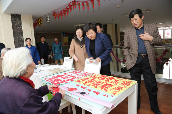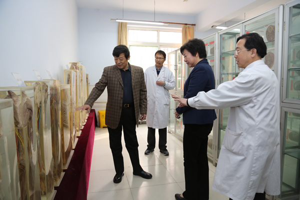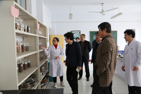 “环境真好!”步入校园,她首先给学校优美的校园环境、良好的文化氛围点了一个“赞”,随后,她饶有兴致地参观了学校部分实训室,对学校丰富的数字化教学资源、教学做一体化的高仿真实践教学环境给予了好评。在老年养护中心,邓素雪与老人们坐在一起拉着手聊起家常,热情询问老人生活情况,祝福老人健康长寿,对老年养护中心合理的布局、人性化的设计、周到细致的服务、医养结合的养老理念表示肯定。在第二附属医院,邓素雪听取了工作人员对医院整体布局与建设、设备引进及管理、特色科室的运营等情况的介绍,对医院宽敞明亮的门诊大厅、先进精良的诊疗设备、科学规范的管理给予好评。