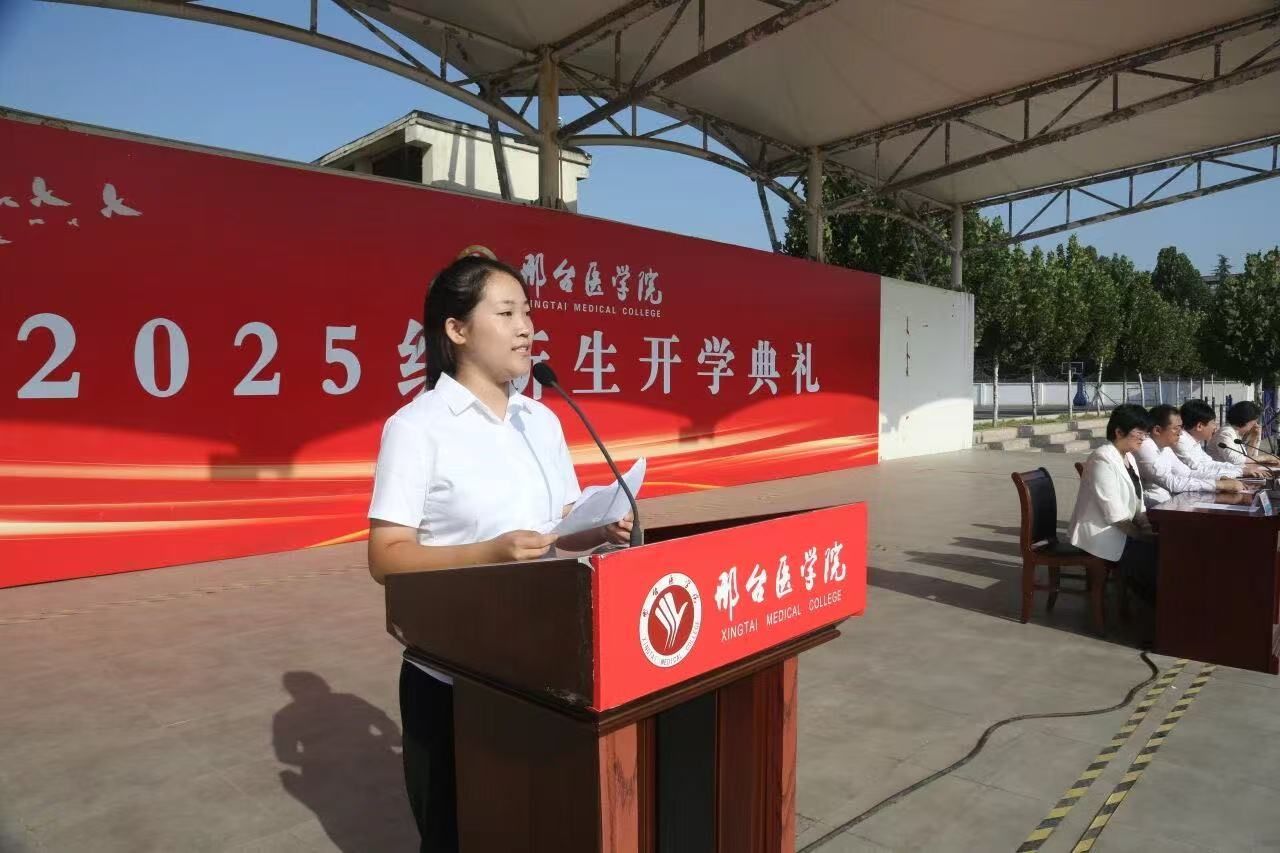 口腔医学系教师王娜、护理系教师王松梅作为教师代表发言,向新同学致以热烈欢迎与美好祝愿,鼓励新生们秉承“崇德、砺志、精业、笃行”的校训,珍惜韶华、脚踏实地,以严谨的态度、扎实的学识筑牢医学根基,勇担守护人类健康的神圣使命。