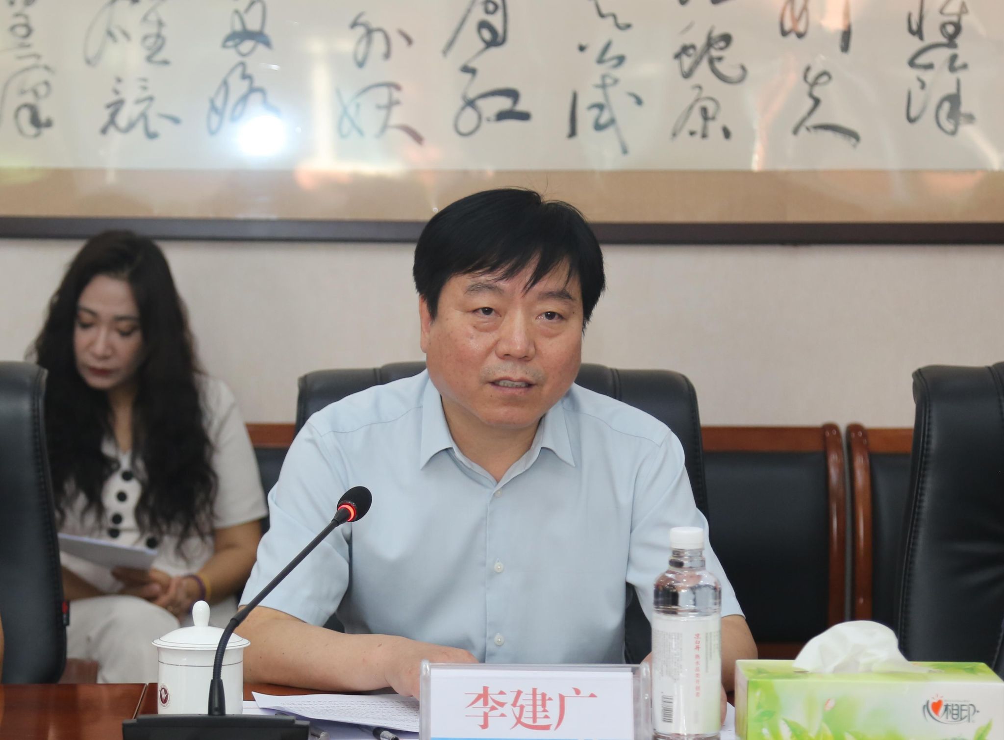 在随后召开的座谈会上,李建广对调研组的到来表示欢迎,介绍了beat365官网基本情况及协助教育部驻村帮扶工作,并就beat365官网在校企协同育人、技术研发与服务、临床研究创新、研发平台建设等方面取得的成绩、当前存在的问题及下步工作考虑作了汇报。