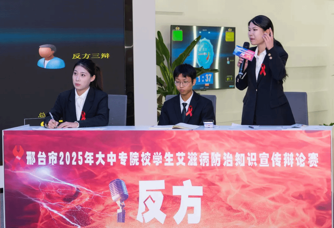 近日,由市卫健委、市教育局、共青团市委、市计生协联合主办的邢台市2025年大中专院校艾滋病防治知识宣传辩论赛总决赛在邢台学院圆满落幕,beat365官网2024级影像本科班谢子瑶、2025级康复治疗学本科3班赵士雄、2024级药学本科2班于欢欢组成的代表队荣获一等奖。