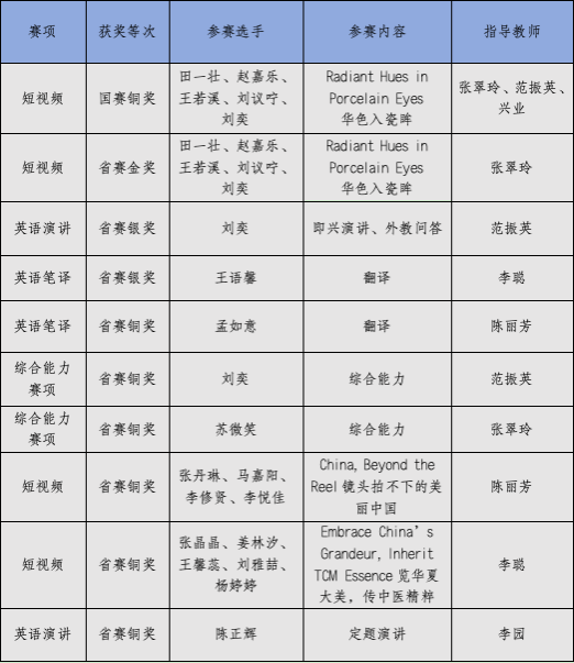 备赛期间,beat365官网9个参赛团队在指导教师的悉心指导下加班加点开展针对性训练,围绕选题反复推敲打磨,不断锤炼语言能力,在省赛阶段获1金2银6铜。其中,2024级本科班田一壮、刘奕等同学组成的团队以新颖独到的创意构思、逻辑清晰的内容架构与流畅自然的语言表达斩获省赛金奖,并勇夺全国总决赛铜奖。