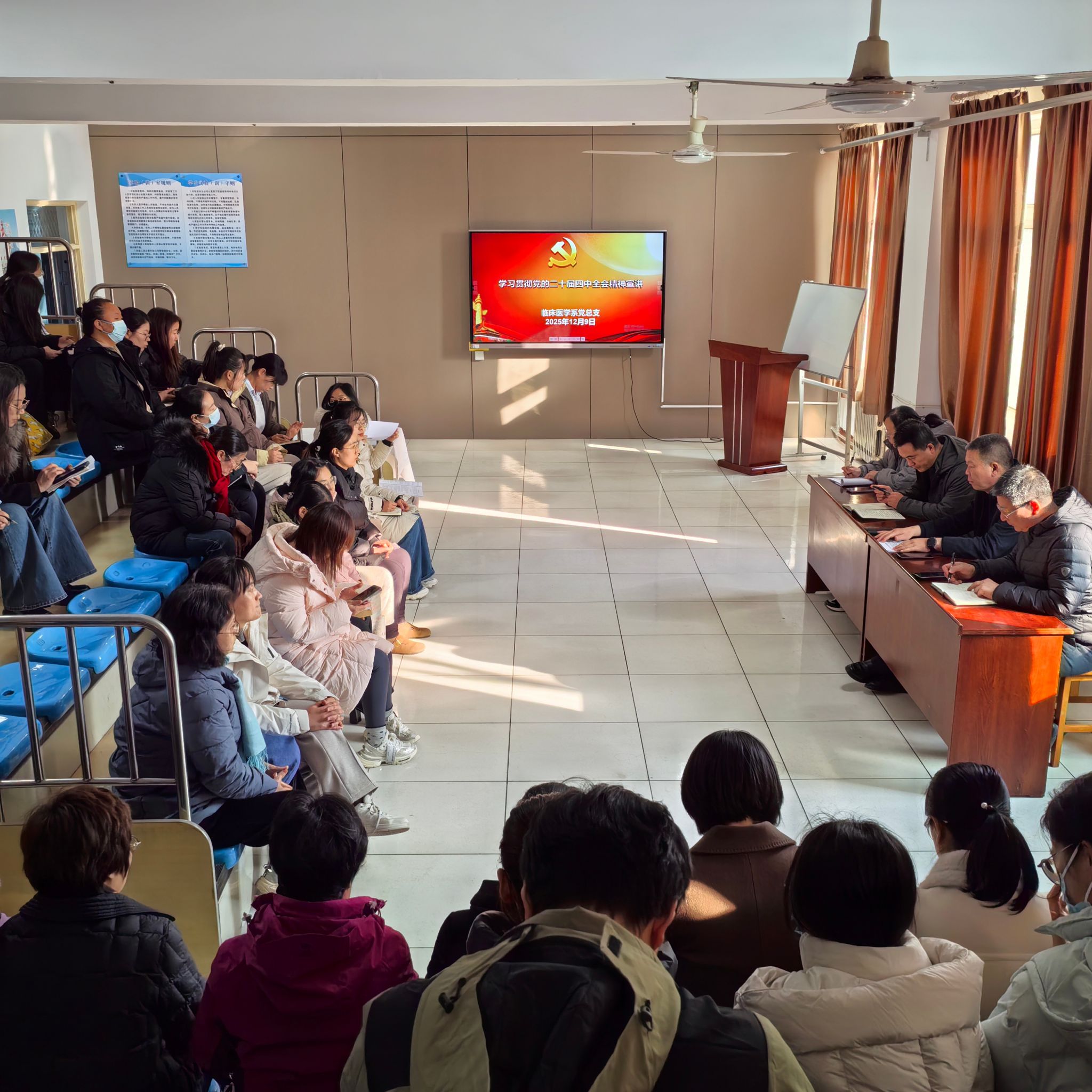 为深入学习贯彻党的二十届四中全会精神,引导全系教师准确把握其核心要义与实践要求,近日,临床医学系党总支开展了专题宣讲,党总支书记马兴友以《深入学习二十届四中全会精神,推动医学教育高质量发展》为题作宣讲报告,系领导、全体教师和辅导员参加。