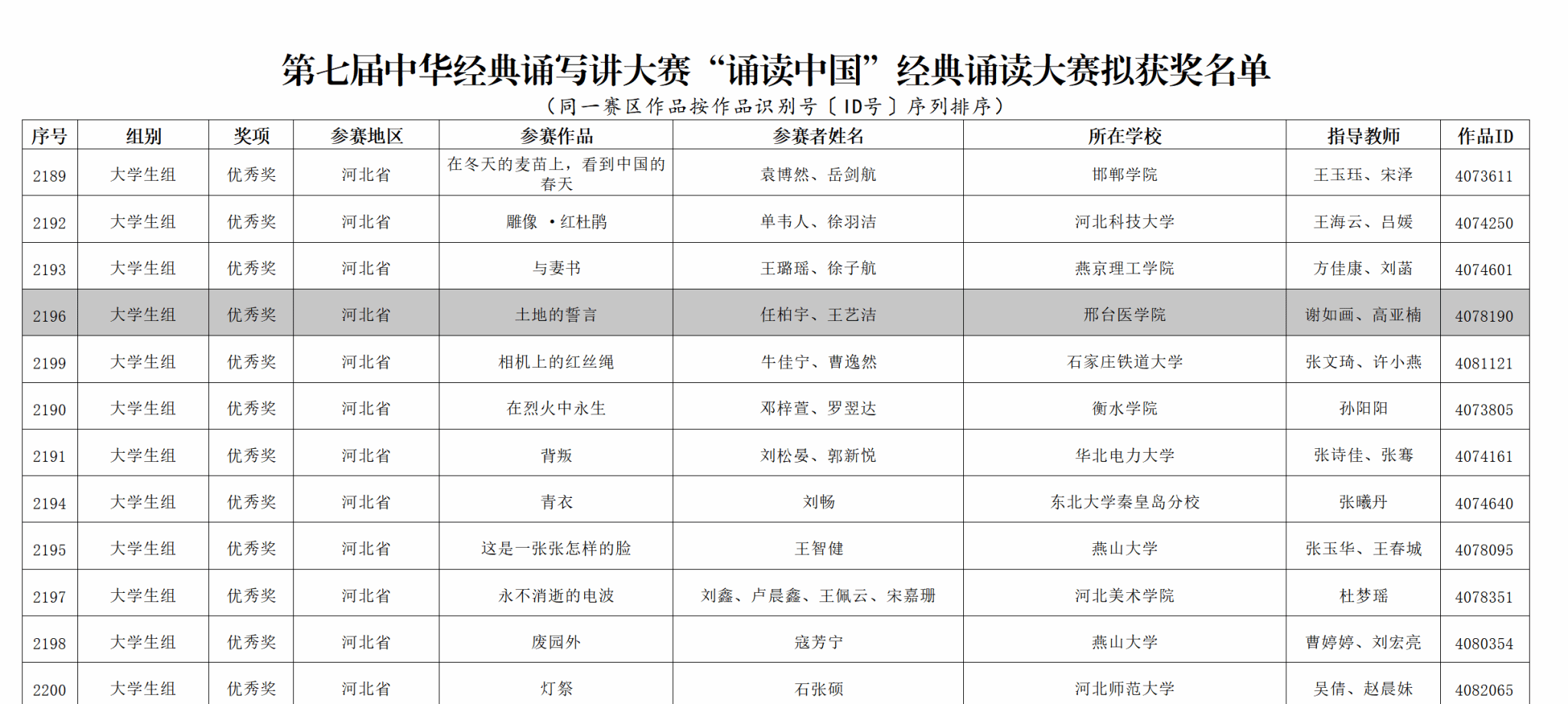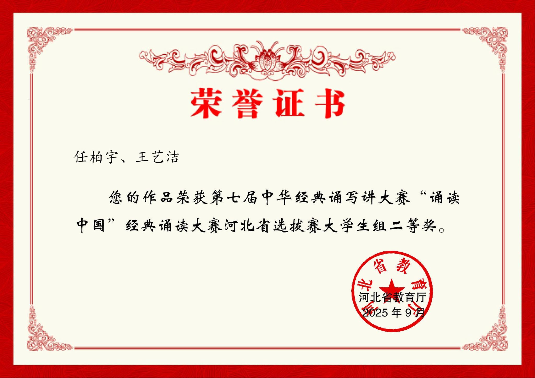 近日,第七届中华经典诵写讲大赛获奖名单公布,beat365官网学生在比赛中表现优异。2024级装备1班任柏宇、2024级临床7班王艺洁同学的作品《土地的誓言》荣获全国优秀奖。4名师生荣获省赛二等奖1项、三等奖2项。