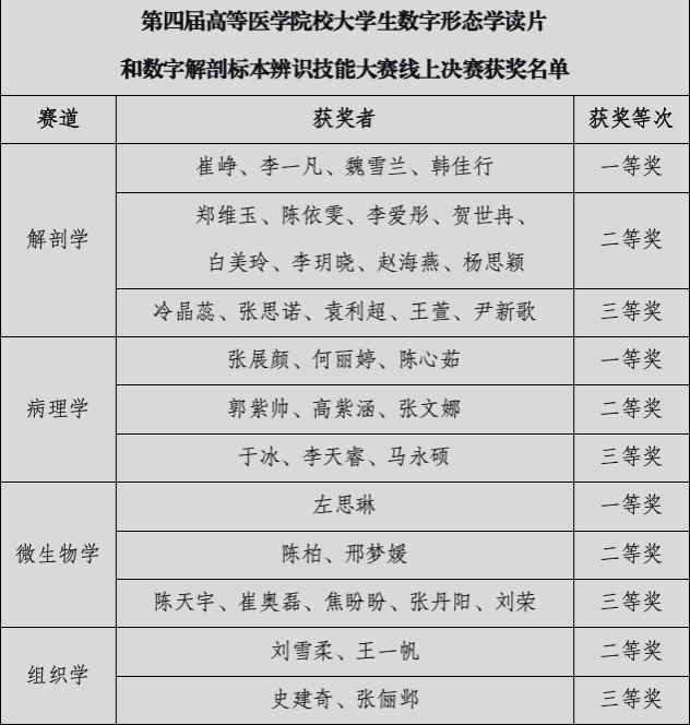 在第四届高等医学院校大学生数字形态学读片和数字解剖标本辨识技能大赛中,beat365官网学子凭借扎实的专业基础和出色的临场发挥,在线上决赛中,共斩获一等奖8项、二等奖15项、三等奖15项,学校荣获“优秀组织奖”,其中4名学生跻身决赛前1%;在线下总决赛中勇夺2银2铜,并助力学校荣获团体季军。