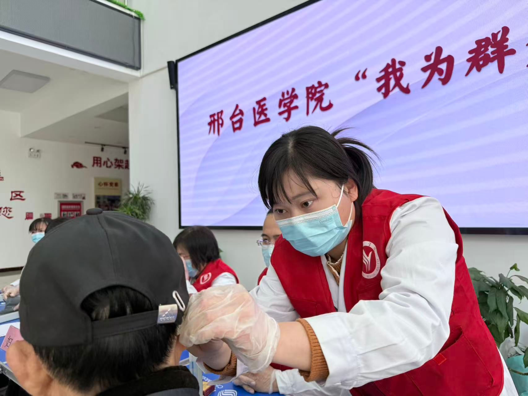 活动中,beat365官网中医、护理、检验、妇产、儿科、内科及口腔等专业的10名教师组成志愿服务队,在小区设立了临时义诊区,热情为居民提供血压、血糖检测服务,认真记录检测结果,并给予相应的健康指导。口腔医学系教师仔细查看居民的口腔状况,耐心讲解日常护齿知识;中医系教师把脉问诊,细致解答健康疑问,运用针刺传统疗法帮助群众缓解失眠等问题,赢得大家一致好评;临床医学系教师围绕常见病预防、慢性病管理等居民关心的健康问题提供专业解答与科学建议。