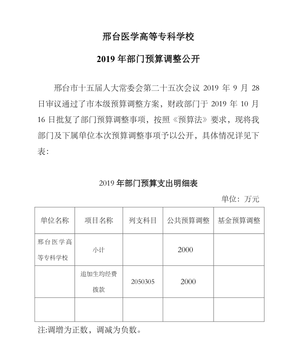 下一条:邢台医学高等专科学校2019年预算公开