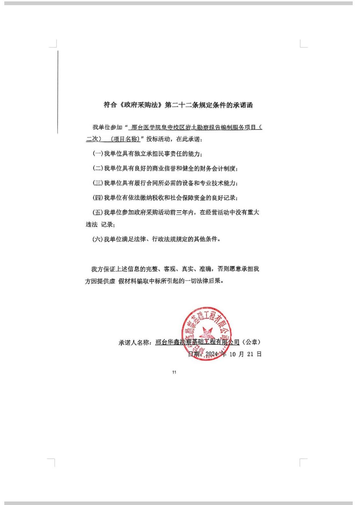 供应商名称:邢台华鑫勘察基础工程有限公司