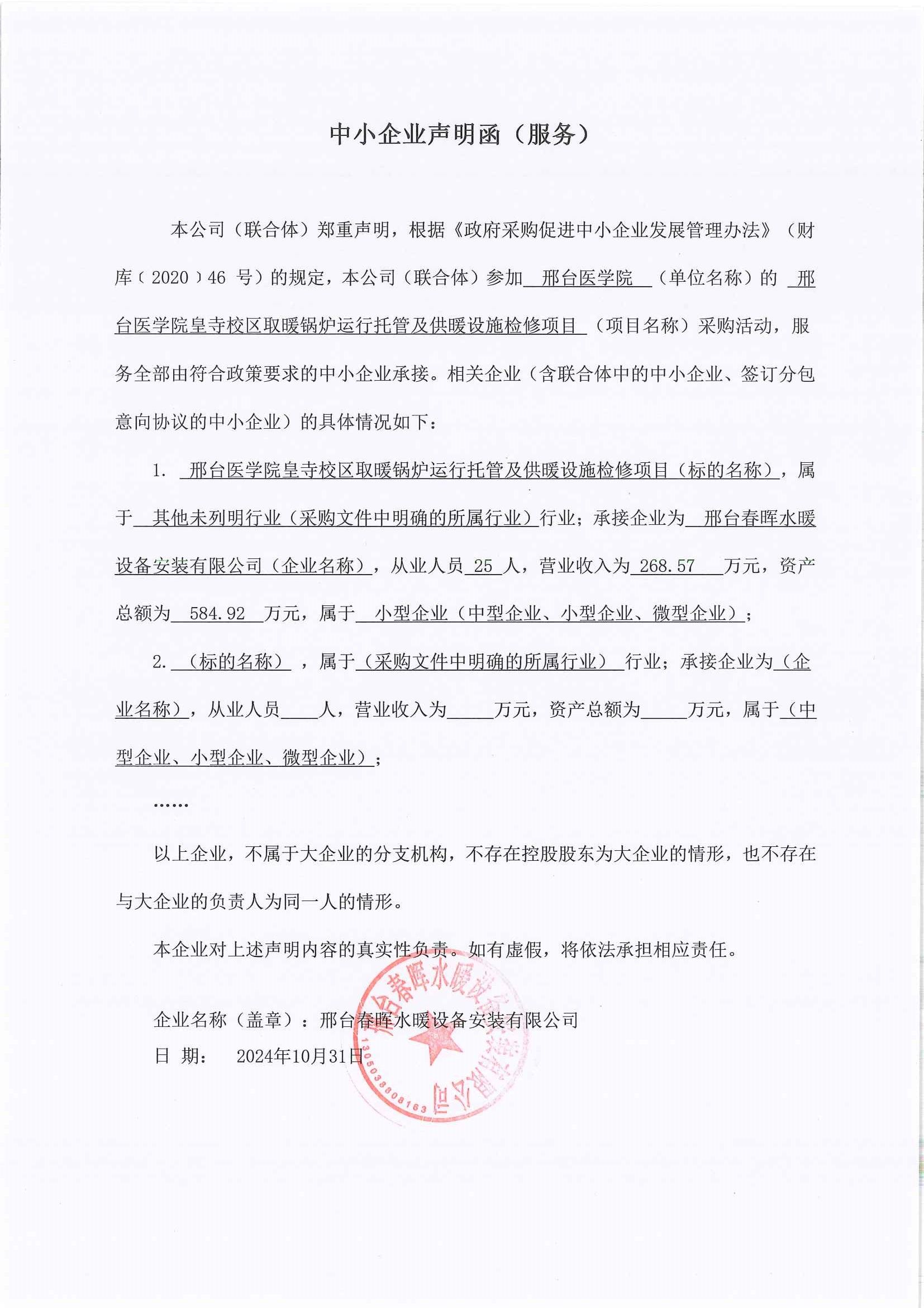 名 称:beat365平台唯一官网皇寺校区取暖锅炉运行托管及供暖设施检修项目 服务范围:beat365平台唯一官网皇寺校区2台6吨取暖锅炉操作运行托管及其附属设备、室内外供暖系统设施的维修,供暖面积约109195 平方米。 服务要求:beat365平台唯一官网皇寺校区2台6吨取暖锅炉操作运行托管及其附属设备、室内外供暖系统设施的维修,供暖面积约109195 平方米。 服务时间:1年(一个采暖季) 服务标准:合格 |