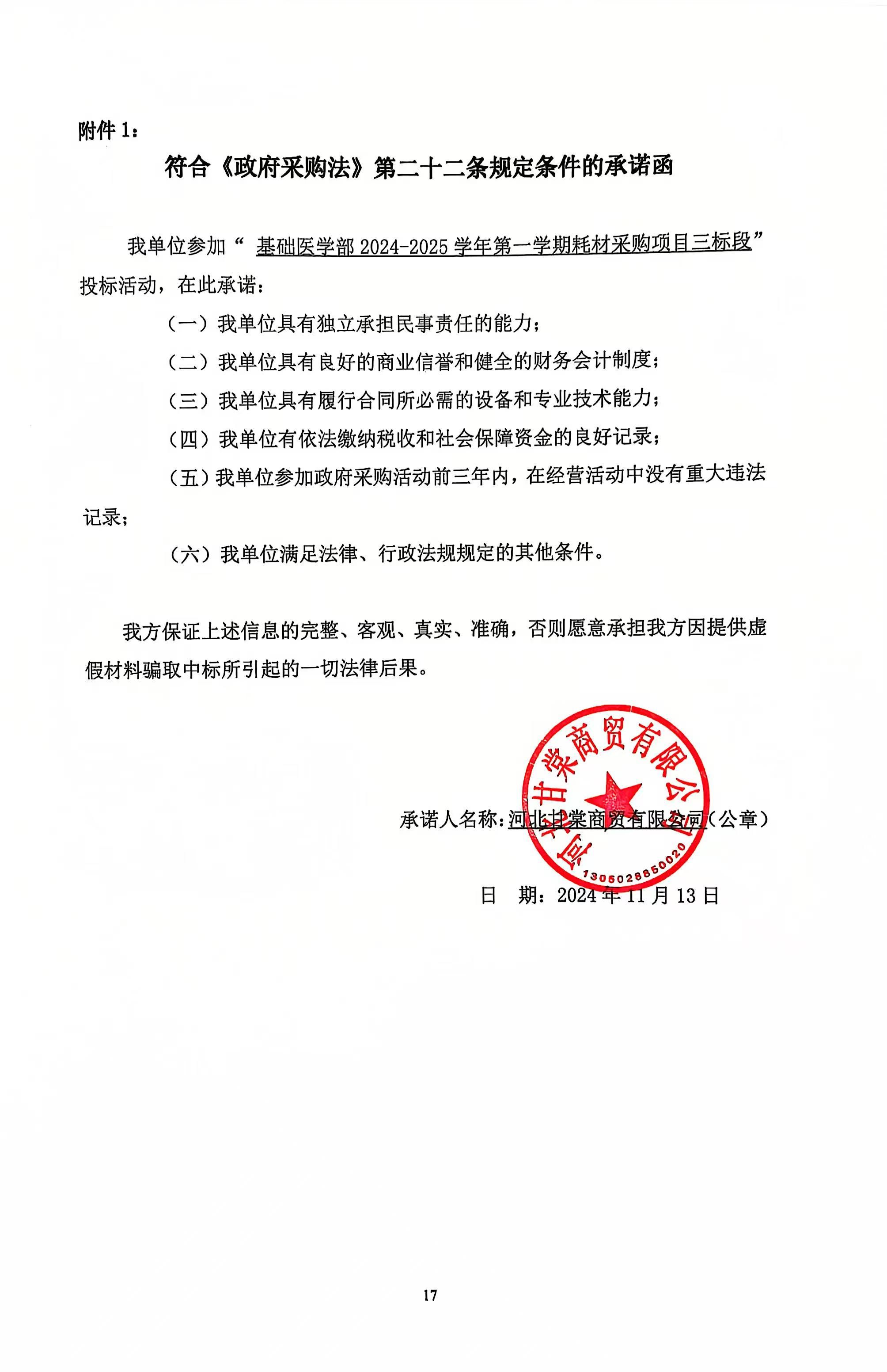 供应商名称:河北甘棠商贸有限公司