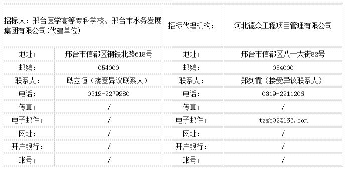 1.邢台医学高等专科学校(建设单位)、邢台市水务发展集团有限公司(代建单位)提出,联系人:耿立恒 ,联系电话: 0319-2279980 。