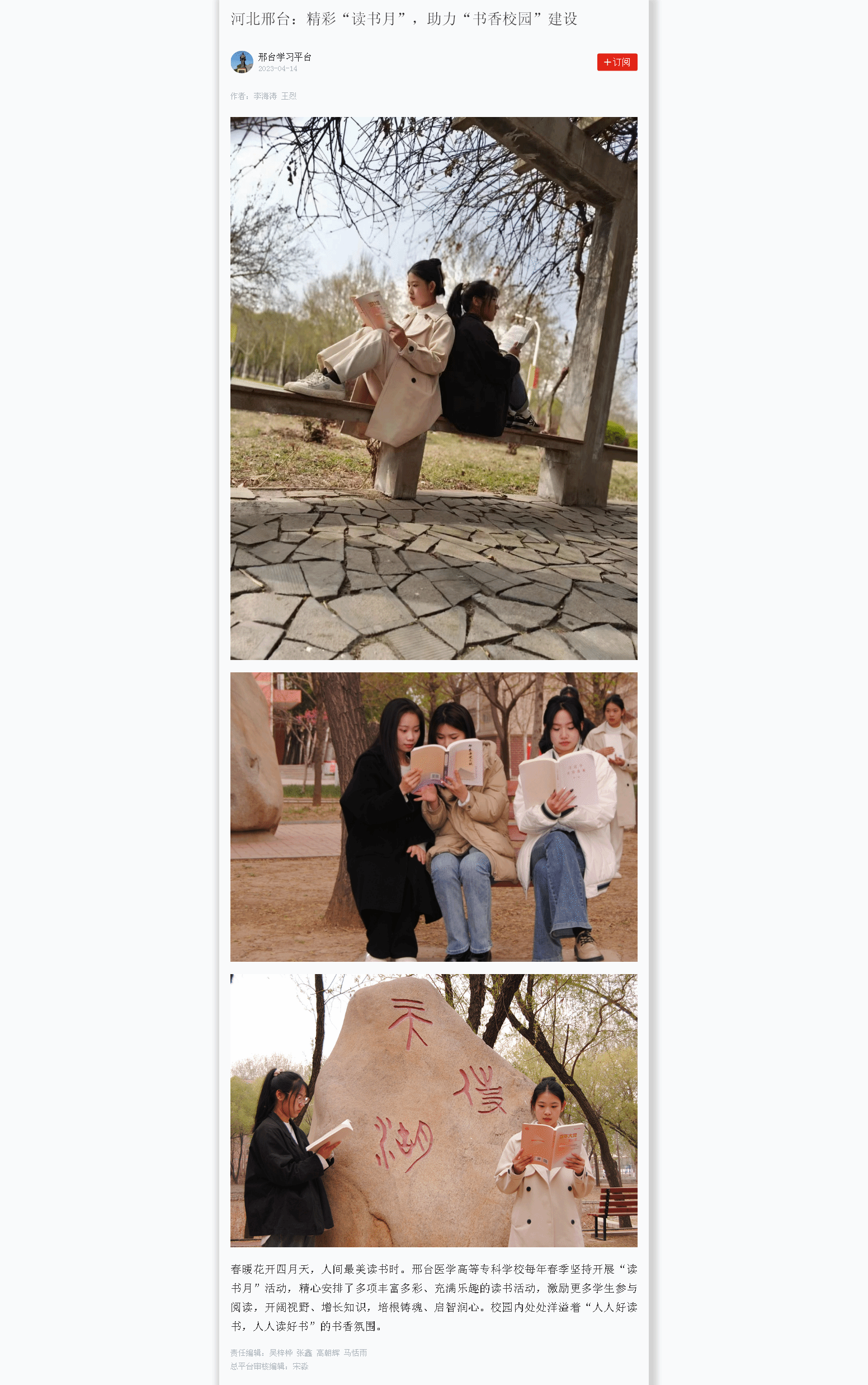 上一条:邢台日报报道:“邢台医专:被授予省孔子学院(课堂)联盟单位”