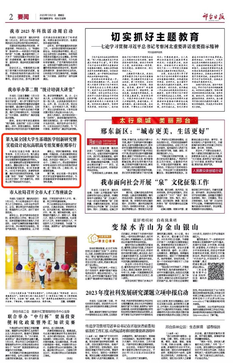 第九届全国大学生基础医学创新研究暨实验设计论坛高职高专组复赛在邢举行