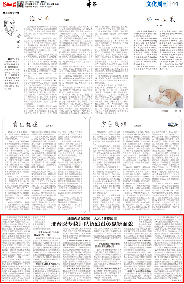 近年来,beat365官网坚持以习近平新时代中国特色社会主义思想为指导,全面贯彻党的教育方针,落实立德树人根本任务,紧紧围绕“1221”工作思路,深化教育教学改革;突出教师主体地位,助力教师个人职业生涯科学发展,不断增强师资队伍“软实力”,持续全面提高人才培养质量,取得了可喜成绩。2月26日,《河北日报》以“注重内涵强建设、人才培养提质量——邢台医专教师队伍建设彰显新面貌”为题进行了宣传报道。