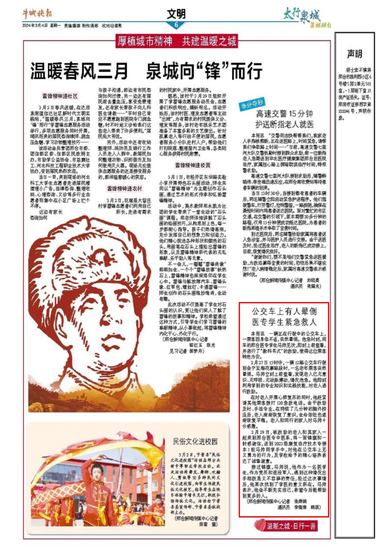 牛城晚报:公交车上有人晕倒 医专学生紧急救人