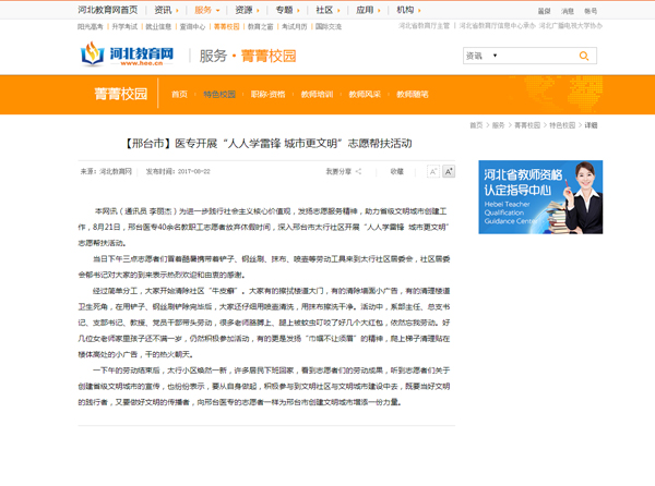 上一条:河北教育网报道:邢台医专召开中层干部工作会 强调加强党建 提振精神 推动学校事业上台阶
