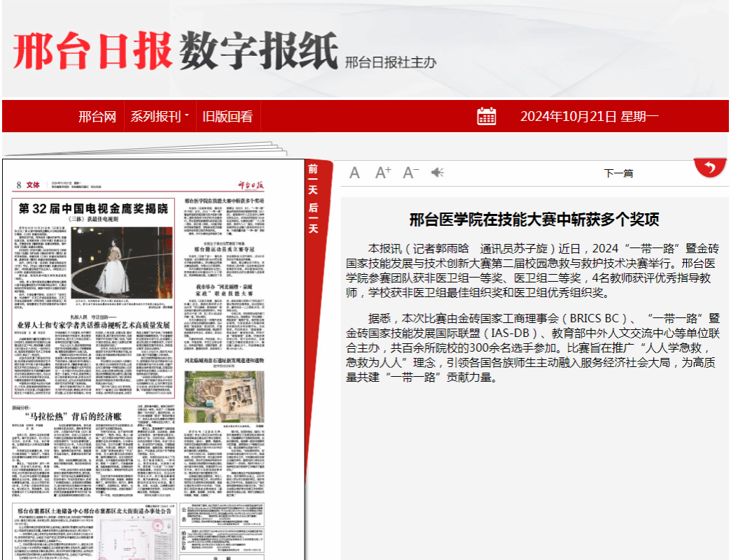 近日,2024“一带一路”暨金砖国家技能发展与技术创新大赛第二届校园急救与救护技术决赛举行。beat365平台唯一官网参赛团队获非医卫组一等奖、医卫组二等奖,4名教师获评优秀指导教师,学校获非医卫组最佳组织奖和医卫组优秀组织奖。