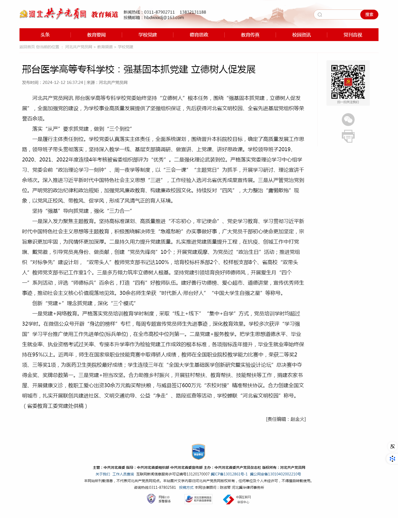 河北共产党员网:强基固本抓党建 立德树人促发展