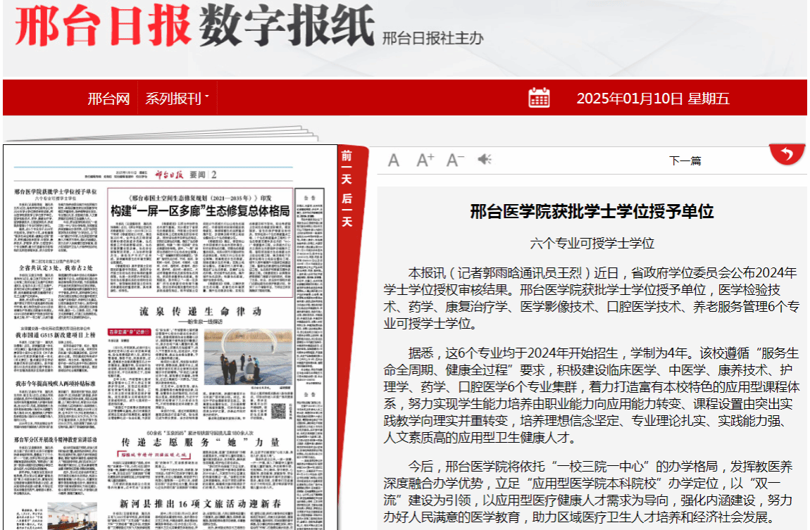 近日,省政府学位委员会公布2024年学士学位授权审核结果。beat365平台唯一官网获批学士学位授予单位,医学检验技术、药学、康复治疗学、医学影像技术、口腔医学技术、养老服务管理6个专业可授学士学位。